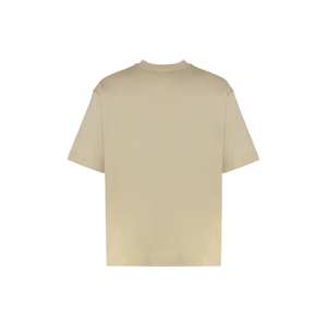 Questa t-shirt beige, realizzata in cotone di alta qualità, offre una vestibilità confortevole grazie allo scollo tondo e alle maniche corte. La stampa del logo OFF WHITE sul petto aggiunge un tocco distintivo e riconoscibile, mentre l’orlo dritto assicura una silhouette pulita e contemporanea, ideale per uno stile urbano raffinato.