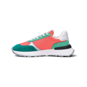 Sneaker Philippe Model Paris donna salmone in pelle scamosciata e tessuto. Ispirata alle corse vintage, la scarpa Antibes reinventa il concetto di running, richiamando lo stile fresco della Costa Azzurra con un tocco giovanile. La suola in EVA è super leggera, con un'altezza di 3,5 cm, mentre la soletta interna Ortholite offre una camminata morbida e una fodera traspirante.